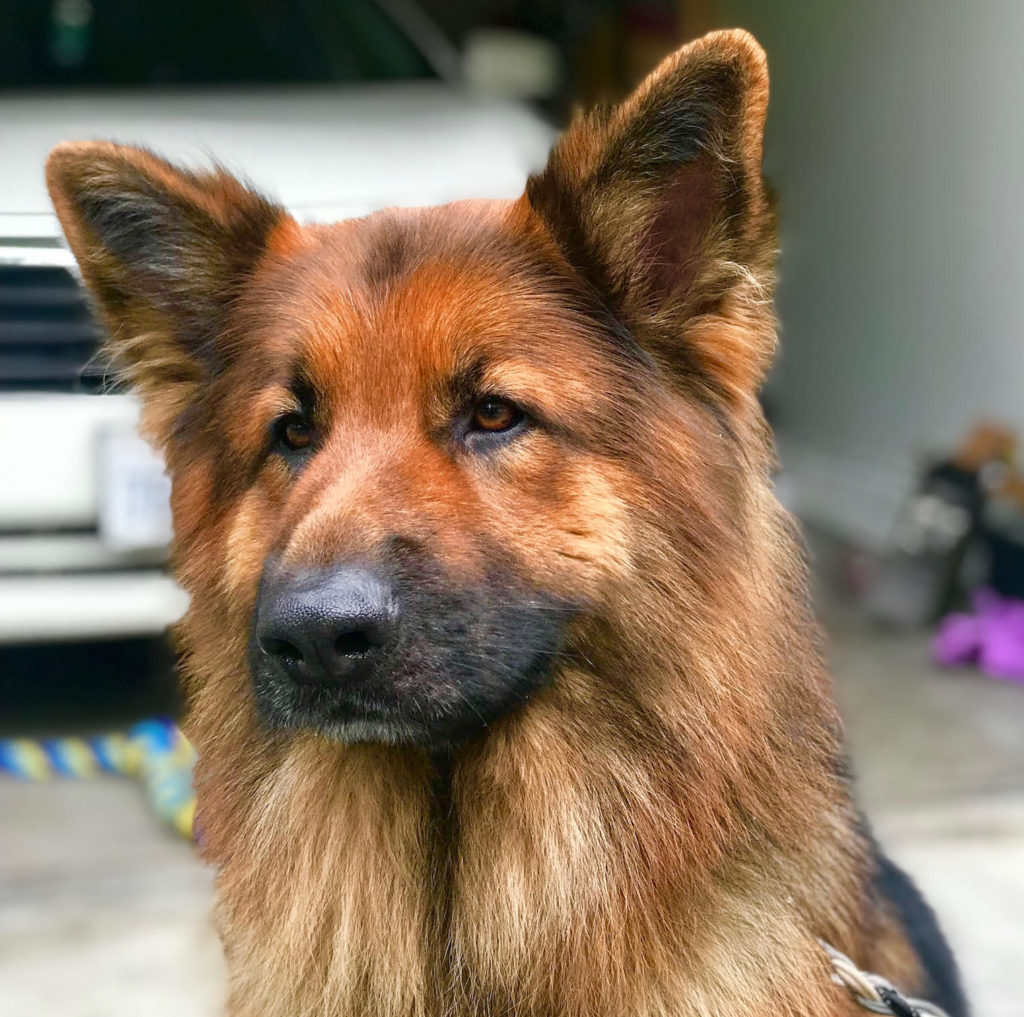 Lion-O is a 4-year-old German Shepherd who was rescued from a Los Angeles Animal Shelter in March 2018. When Lion-O was rescued, he was emaciated, suffered from separation anxiety, and was not house trained. Today, Lion-O is healthy, completely house trained, and waits patiently for his companion to come home. He is paired with Julie.