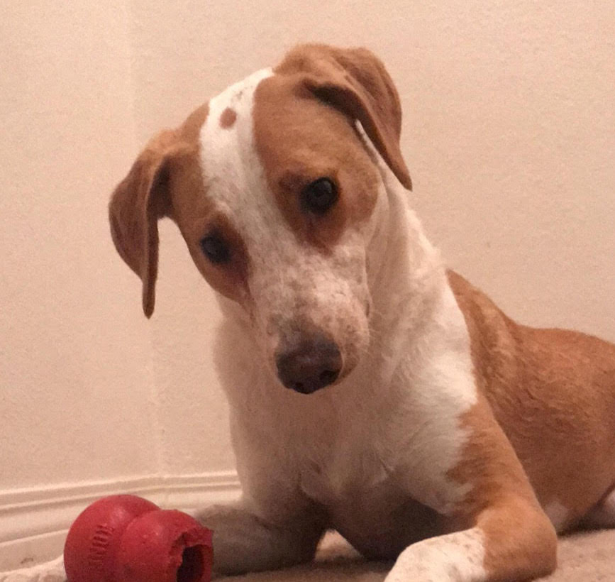 Wiley is a 3-year-old Beagle/Whippet mix. He was handed to Ray’s Hope by his former owner, an elderly lady who was unable to care for him due to her medical problems. When Wiley came to us, he had severe anxiety, problems with leash walking, was afraid of loud noises and men and barked constantly at strangers. Today, almost one year later, Wiley, walks well on a leash, is not afraid of loud noises, and has stopped barking at strangers. Wiley is currently working on overcoming his anxiety. He is currently paired with Ashley.